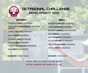 Bowls Far North has confirmed its Premier and Development representative squads for the 2026 Octagonal Challenge, to be held on 14–15 February. For the first time in several years, the Far North will field both men’s and women’s teams across the two competitions, taking on strong opposition from Auckland, Bay of Plenty, Counties Manukau, North Harbour, Thames Valley, Northland and Waikato.